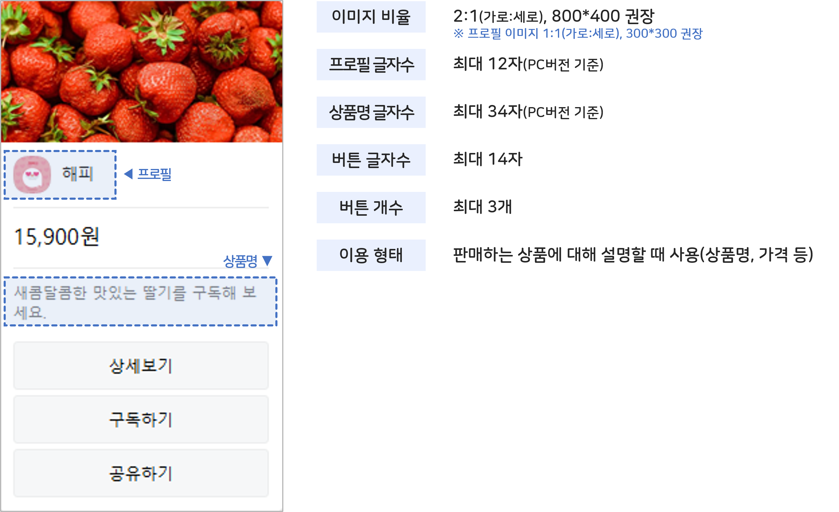 * 버튼명의 경우 카카오는 최대 14자만 노출됩니다.